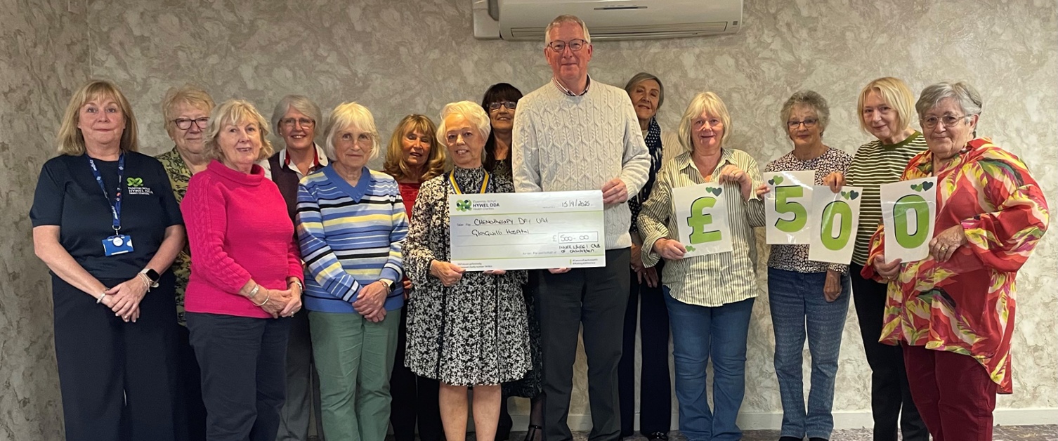 Mae Clwb Inner Wheel Caerfyrddin wedi codi £500 ar gyfer yr Uned Ddydd Cemotherapi yn Ysbyty Glangwili.