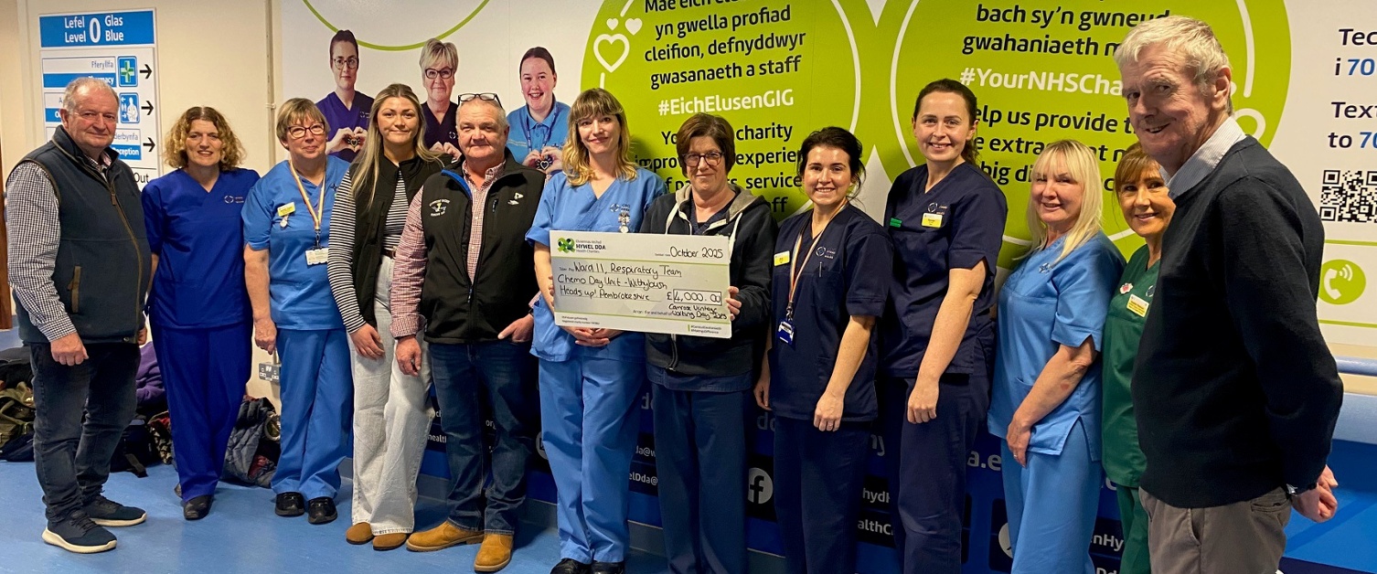 Cafodd arian o'r digwyddiad codi arian – a gynhaliwyd ddydd Sadwrn 23 Awst 2025 – ei roi i'r Uned Dydd Cemo, Ward 11 a'r Tîm Anadlol yn Ysbyty Llwynhelyg yn ogystal â Menter Colli Gwallt Heads Up!. Rhoddwyd £1,000 i bawb.