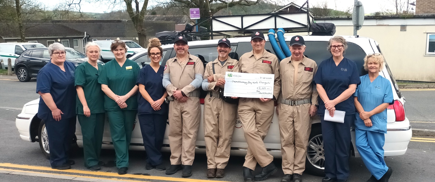 Dewisodd y ffrindiau, a gyfarfu i gyd trwy gyfranogiad eu plant yn Sgowtio yng Nghaerfyrddin, yn unfrydol godi arian ar gyfer yr Uned Ddydd Cemotherapi yn Ysbyty Glangwili, gwasanaeth sy'n agos at galonnau eu teuluoedd.