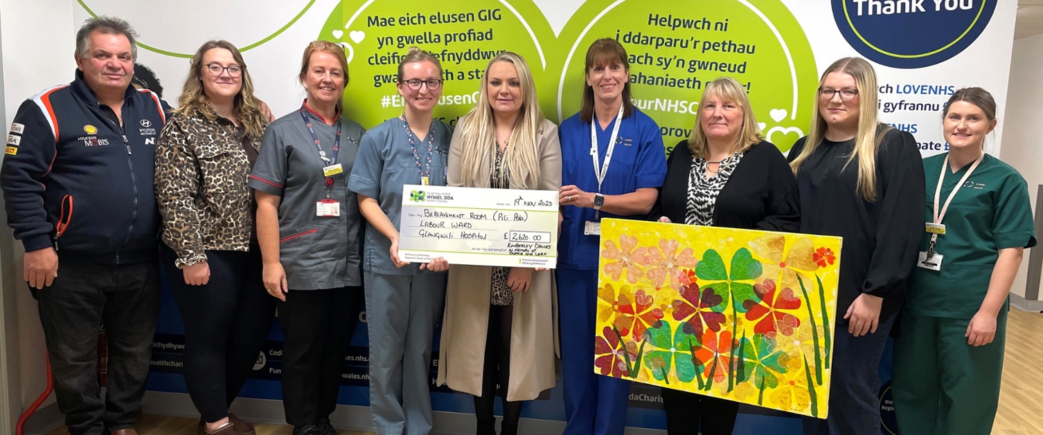 Bydd yr arian a godir gan Kimberley yn galluogi'r ward esgor i brynu eitemau i wella'r ystafell brofedigaeth sydd tu hwnt i gyllid craidd y GIG.