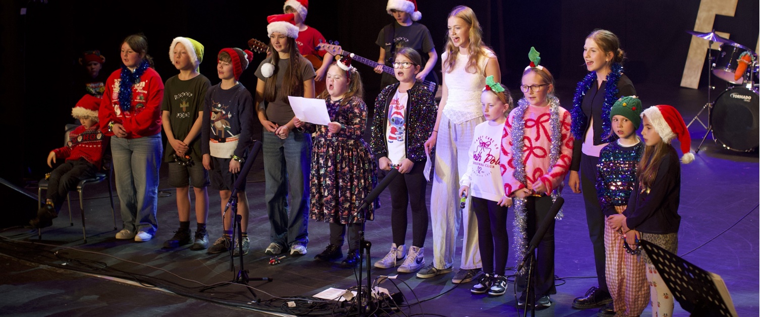 Côr Cân o'r Galon yn perfformio ar lwyfan
