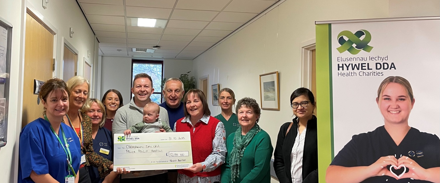 Dywedodd Kath Watkins, Uwch Brif Nyrs: “Ar ran staff a chleifion yr Uned Ddydd Cemotherapi, hoffwn ddiolch i Lowri, Aled, teulu a ffrindiau am eu hymdrechion codi arian anhygoel gan arwain at rodd anhygoel o dros £12,000.